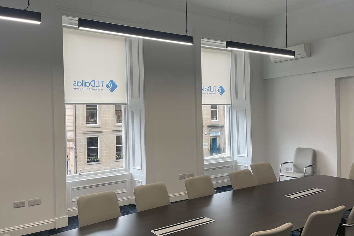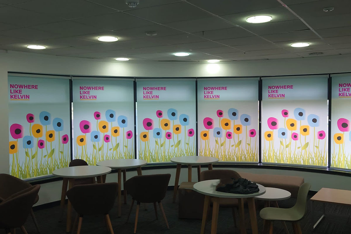 We speak to lots of business owners who are based in city centre locations, and due to planning restrictions they are not allowed to erect any effective signage on the outside of the building, so they struggle to attract new clients as most of the passing footfall don’t even know they are there. Our bespoke printed blinds help new and existing clients find them easily. Sometimes it’s a bit different, some businesses located in large bland business centres want to “stand out” from the other occupants and our custom printed blinds have helped them to do that. Our bespoke blinds are the perfect way to showcase your brand while maintaining a professional look. With a variety of styles and colours available, you can elevate your office space and leave a lasting impression on clients and visitors.